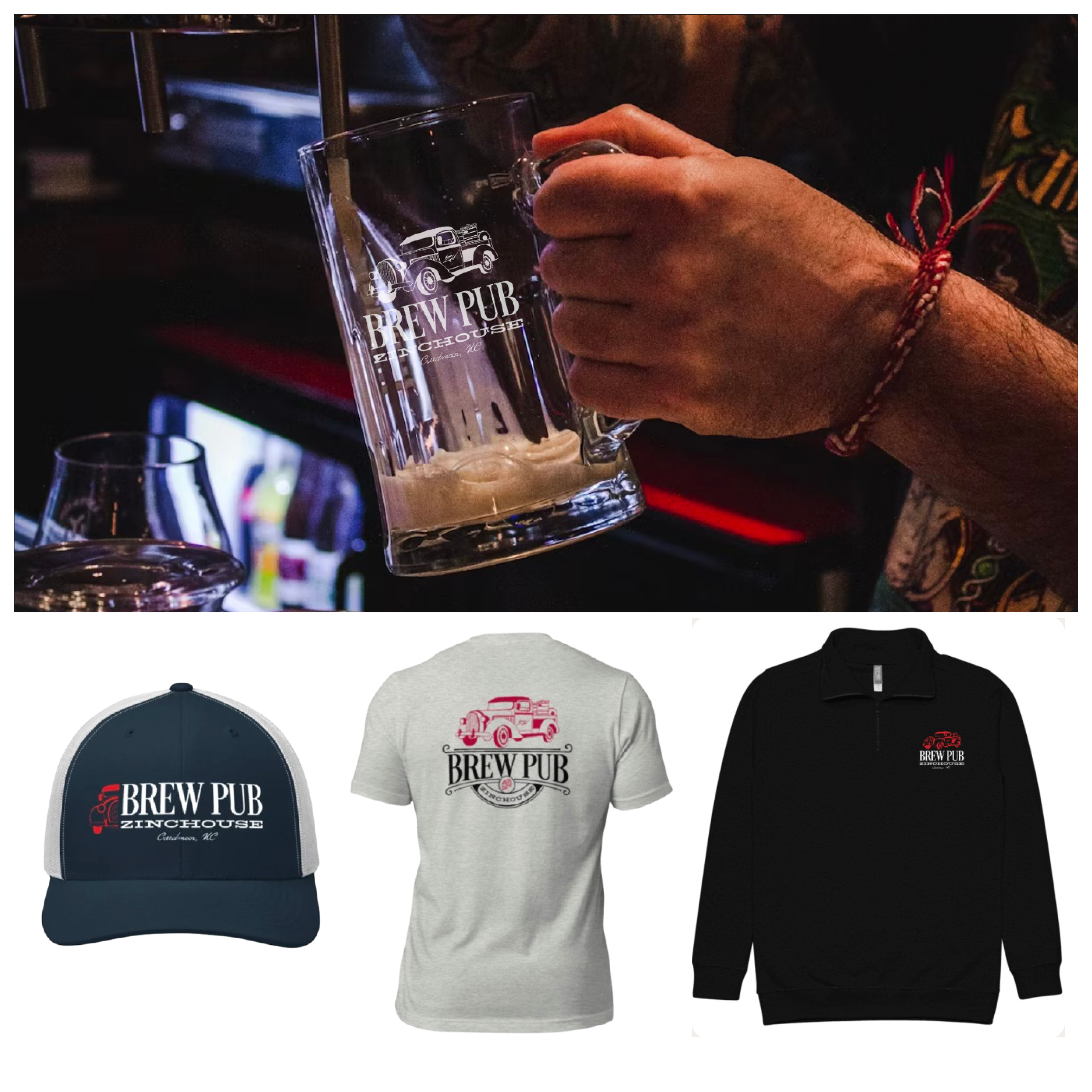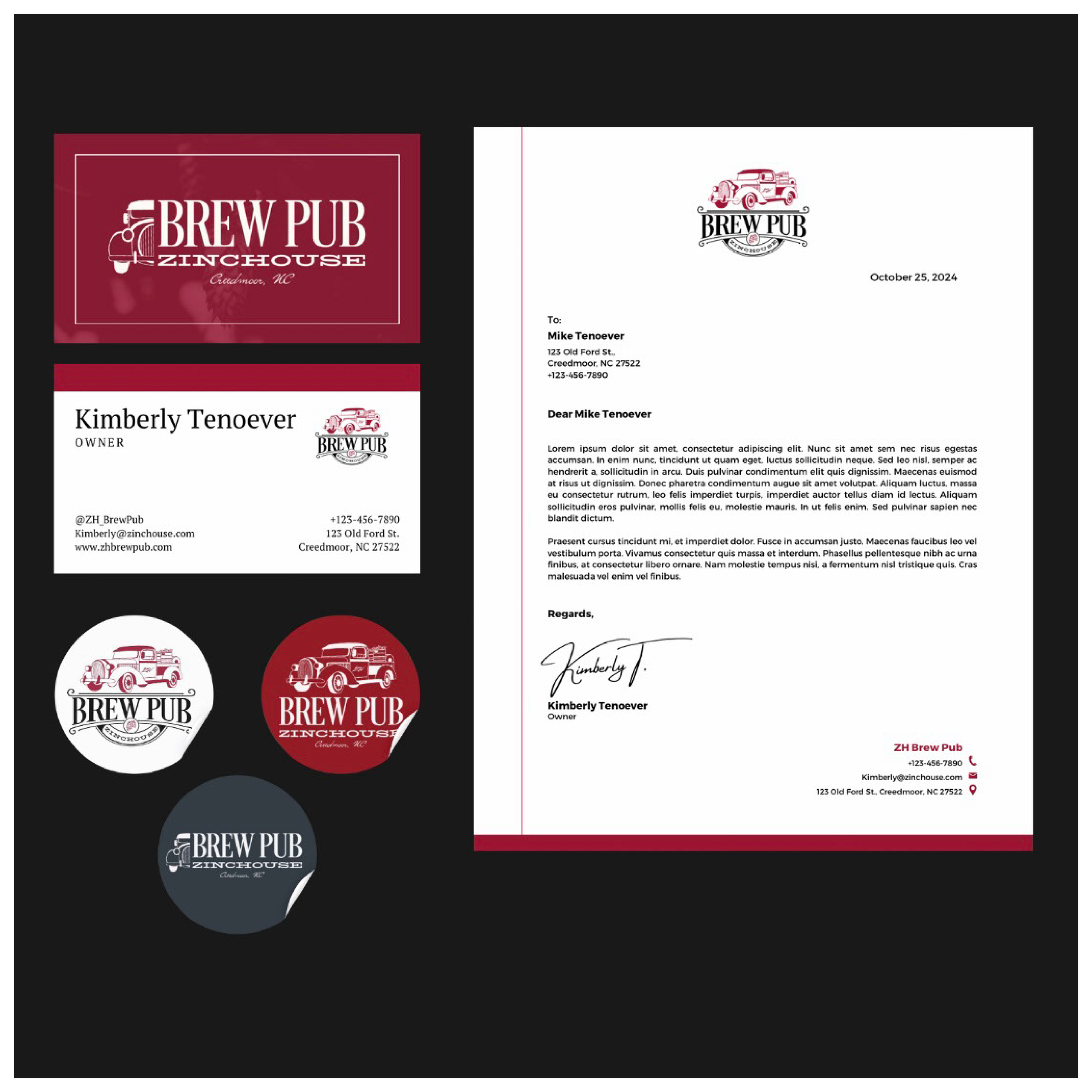 Taking inspiration from vintage trucks and the hand drawn style of the original ZincHouse “ZH” logo, I created an all new and unique truck illustration catering to the ZincHouse theme of the 1920’s time period. In the bed of the truck you can find barrels of hops used for the production of crafting beer. The client requested an old red truck design to be a part of the logo for the Brew Pub. As well as to incorporate the original ZincHouse logo and layout. To do this, I created a hand drawn vintage truck to match the texture of the original “ZH” logo and paired a serif typeface with the existing ZincHouse Winery & Brewery typefaces. The design’s raw, artisanal feel, paired with less vibrant tones and classic typography, mirrors the hand-drawn essence of the original branding, evoking a sense of tradition and craftsmanship.